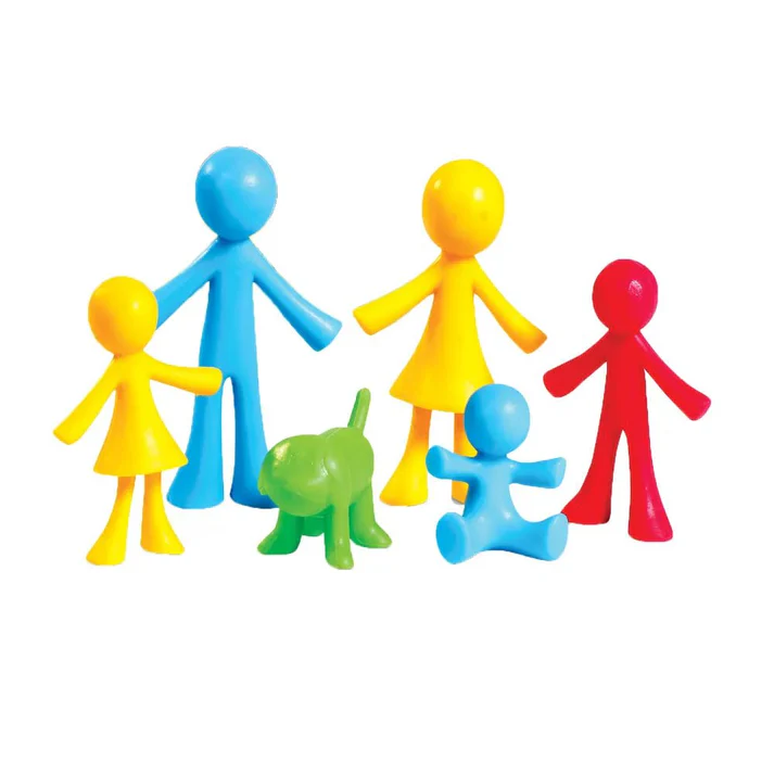 Met deze vrolijke sorteerpoppetjes wordt leren tellen, sorteren en categoriseren een feestje. De set bestaat uit 24 figuren in verschillende kleuren en vormen, waaronder familieleden en een schattige hond.